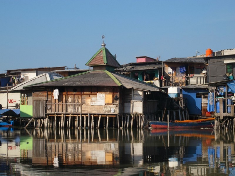 Uniknya, ada pemandangan kontras saat Anda berwisata di tempat ini. Di antara rumah-rumah terapung terdapat pemandangan gedung bertingkat di kejauhan. Jangan buang waktu, ambil lah gambar ini dalam kamera Anda.